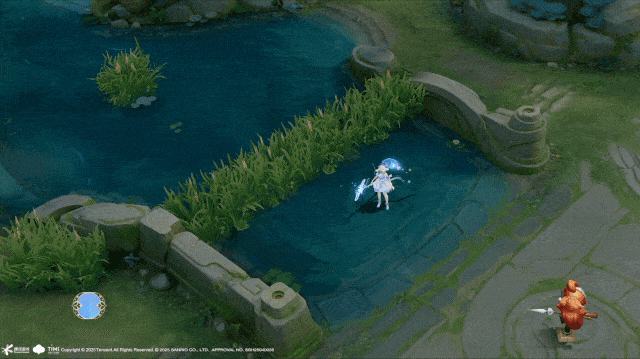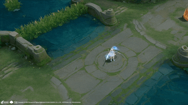 普攻:肉桂卷泡泡的“光影烘焙术”传统弹道特效被重构为“阳光彩虹+肉桂卷”流体形态,浅蓝底色中包裹七彩光斑,命中时化作蓬松云朵消散,并残留焦糖色渐变边缘,模拟烘焙时“外脆内软”的视觉质感。音效加入“叮铃铃”风铃声,配合泡泡炸裂时的奶油喷泉特效,将“普通攻击”转化为“甜品运输”的童话叙事。
