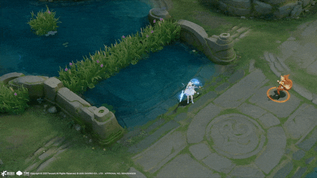 被动:大耳狗饼干的“情感羁绊链”待机时6块晶莹的大耳狗饼干绕体旋转,表面雕刻云纹与星星暗纹;触发被动瞬间,白色小鹿载着巨型泡泡疾驰,泡泡内悬浮迷你甜品车与旋转木马,底部拖拽彩虹光轨,将“变身”机制转化为“治愈能量运输”的童话旅程。
